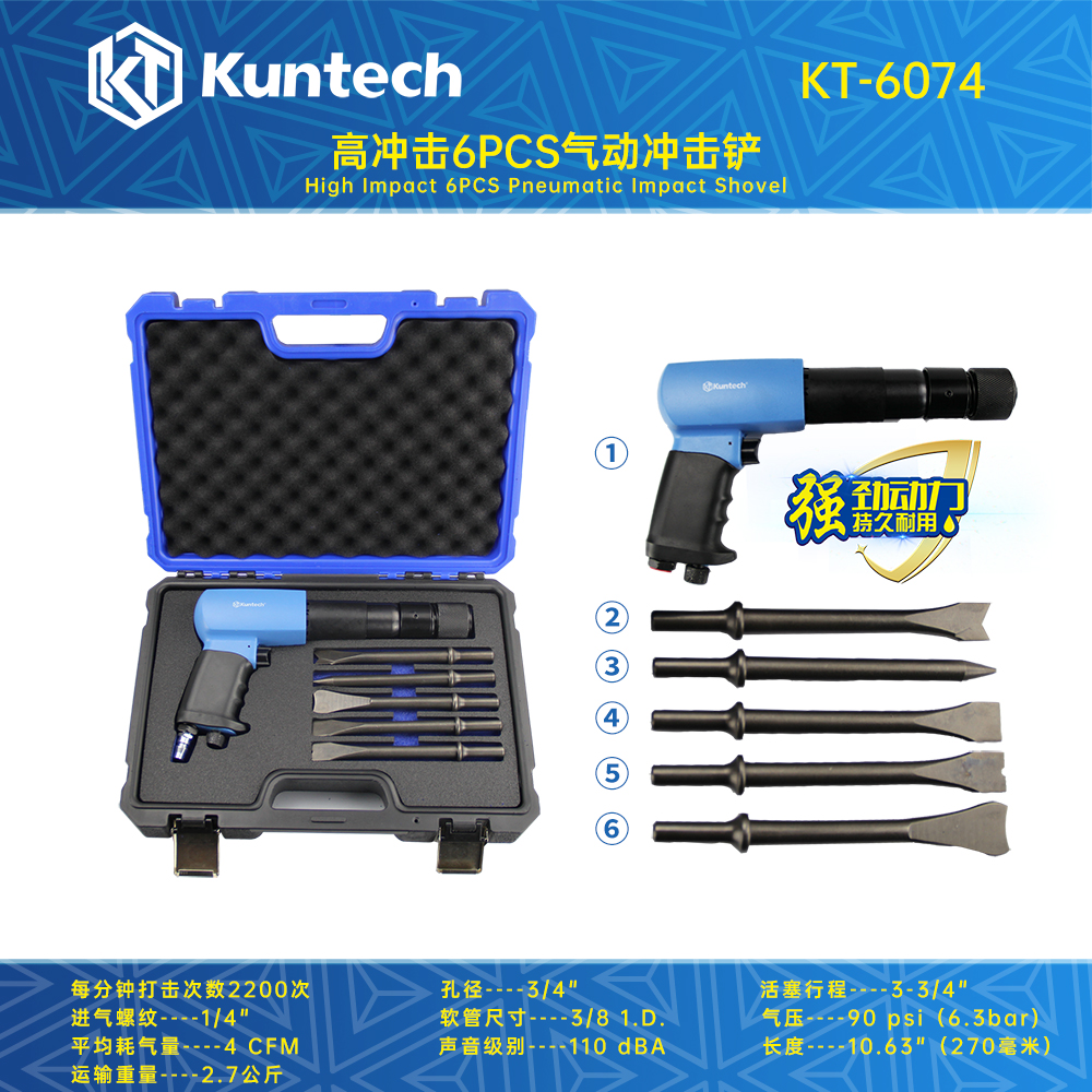KT-6074 高冲击6PCS气动冲击铲/ KT-6074 High impact 6PCS pneumatic impact shovel