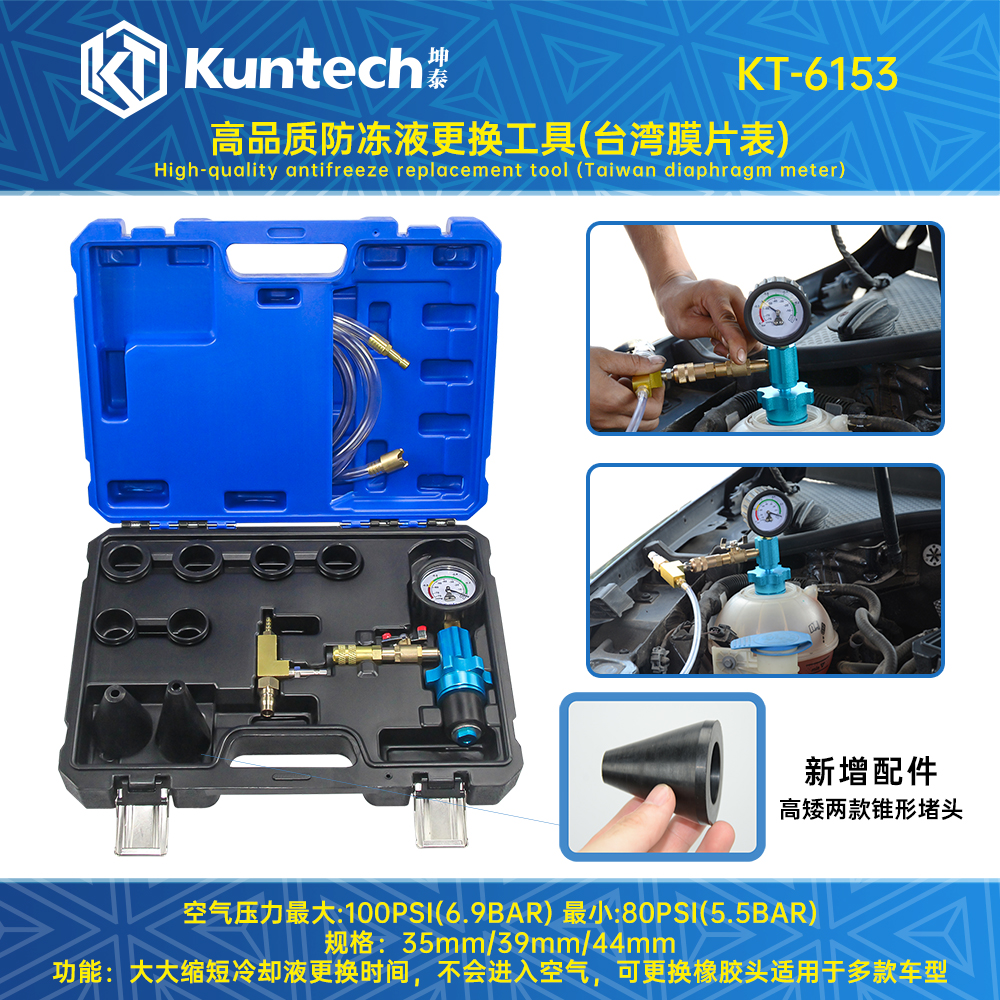 KT-6153 高品质防冻液更换工具(台湾膜片表)/ KT-6153 High quality antifreeze replacement tool (Taiwan diaphragm meter)