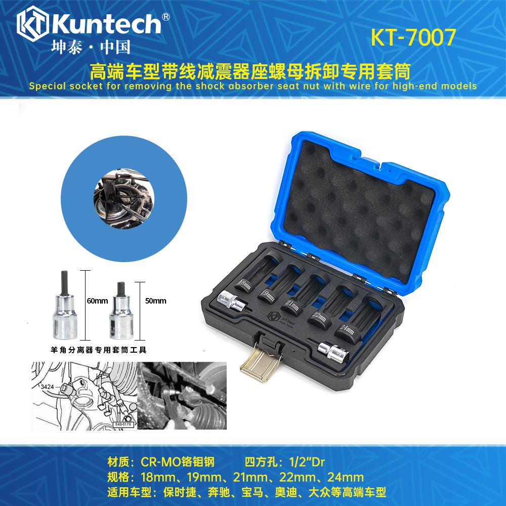 KT-7007 高端车型带线减震器座螺母拆卸专用套筒/ KT-7007 Special socket for removing the nut of the shock absorber seat with wire for high-end models