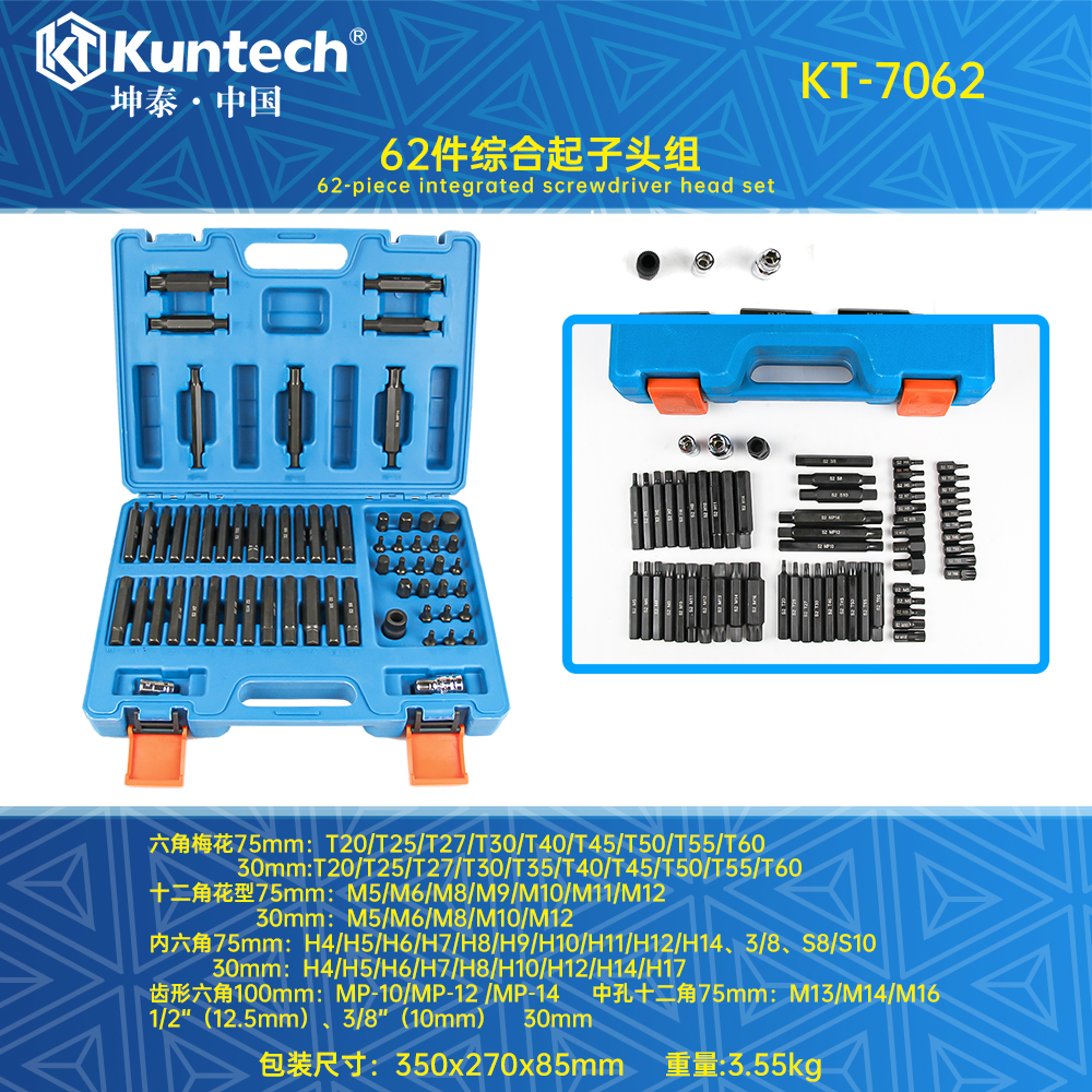 KT-7062 62件综合起子头组/ KT-7062 62-piece integrated screwdriver bit set