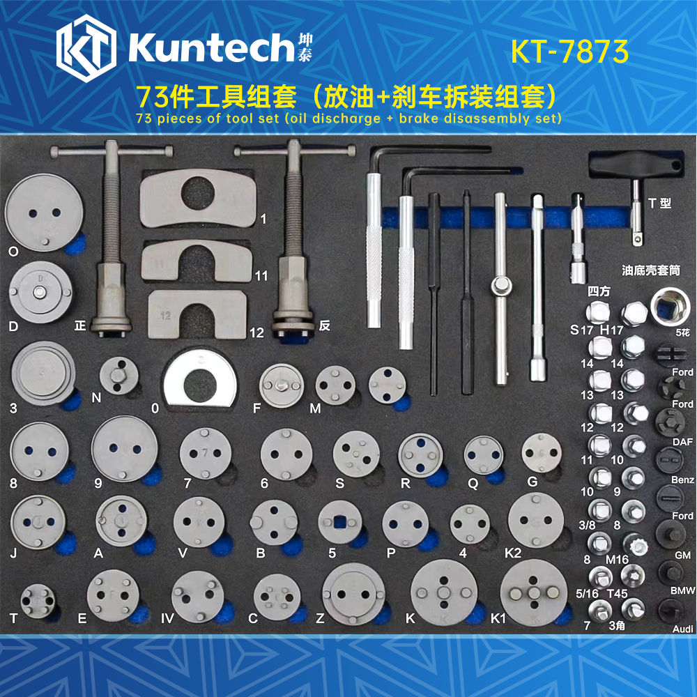 KT-7873 73件工具组套(放油+刹车拆装组套)/ KT-7873 73-piece tool set (drain oil + brake disassembly and assembly set)